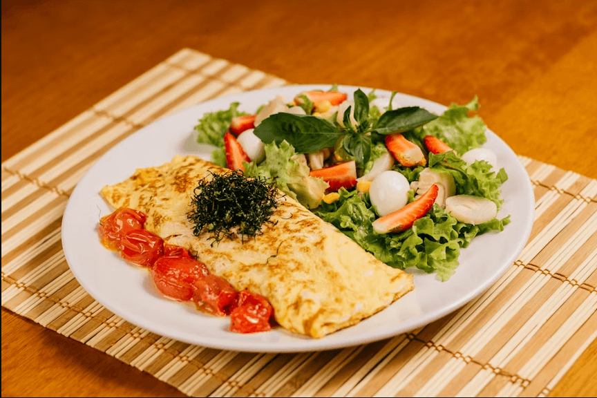 A heartier version of the omelette, typically whisked with finely chopped onions, tomatoes, and sometimes green bell peppers or chilies for extra flavor and texture.